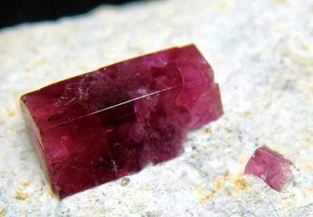 5. Красный берилл. Если взглянуть на фото, то можно увидеть потрясающе красивый камень ярко-алого оттенка с фиолетовым отливом, переливающийся на свету. Он невероятно прочен и даже при накаливании до 1000 градусов Цельсия сохраняет свои свойства.
