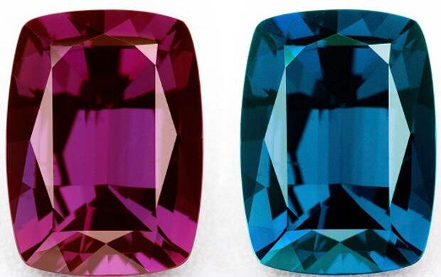 Так, при дневном свете оно будет радовать глаз разными оттенками зелёного (травяной, бирюзовый, оливковый), а вот при искусственном освещении он может быть малиновым, пурпурным или даже красно-фиолетовым. Объясняется такая уникальная способность тем, что в александрите обнаруживается крайне редкое сочетание минералов, таких как хром, титан и железо.