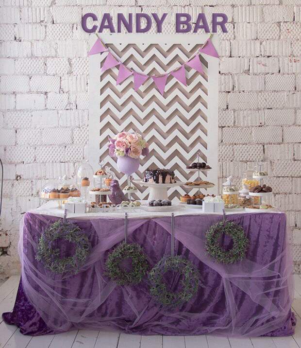 - Освещение. Оно играет важную роль, так как именно при ярком свете лавандовый выглядит особенно нежно. Если вы решили устроить праздник на открытом воздухе, то вам очень повезёт, если день будет солнечным и ясным. Если мероприятие проводится в помещении, то позаботьтесь о том, чтобы работали и были включены все светильники и люстры.