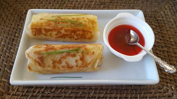 Разложите начинку на тесто и аккуратно заверните роллы. Обжарьте на растительном масле с каждой стороны. Подавайте с кисло-сладким острым соусом.