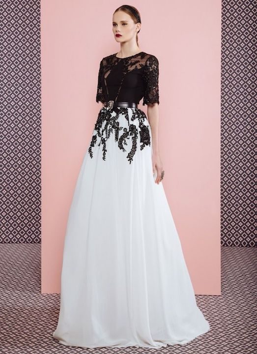 Известная в мире моды Вера Ванг украсила платья огромными черными цветами, разместив их на плече, а бренд Carolina Herrera ограничился минимализмом, добавив всего лишь темную атласную ленту на талию, как представлено на фото.