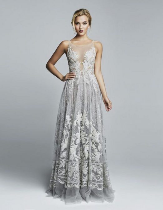 Непривычный цвет. Мы уже говорили о черном. Но это далеко не предел. Свадебные платья 2018 года вполне могут иметь голубой, пепельный, серый или легкий сиреневый оттенок. Но это должны быть едва уловимые полутона, чтобы наряд не превратился в подобие повседневной одежды.