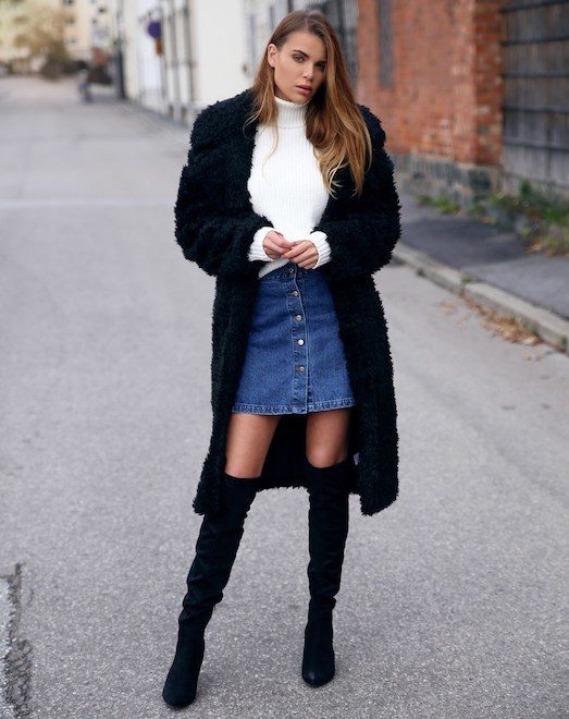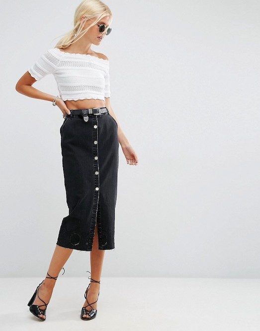 Смотреться стильно они будут как обувью на каблуке, так и с кроссовками или мокасинами. Выбрать юбку на пуговицах, которые будут функциональными (то есть расстегиваться) или носить лишь декоративный характер зависит исключительно от ваших предпочтений.