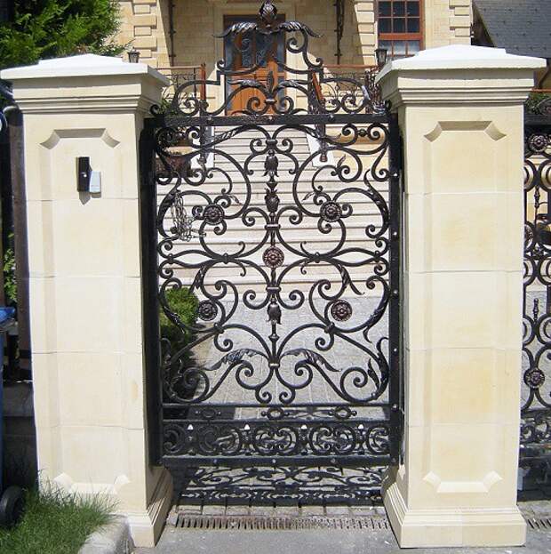 - Английский стиль. Выбрав такое направление, вы просто обязаны приобрести шикарную и богатую кованую калитку.
