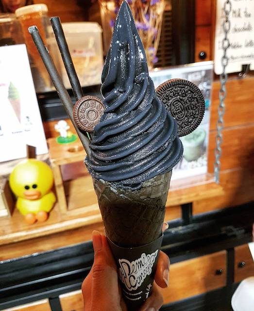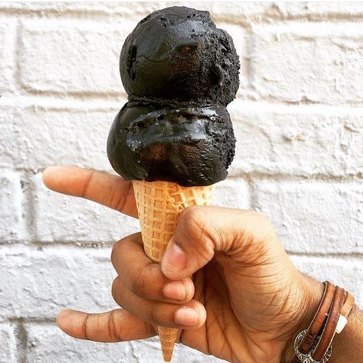 Идею подхватили кондитеры из Америки, но они для окрашивания использовали другой ингредиент – пепел, полученный из остатков кокосовой скорлупы, то есть практически уголь. Никаких вкусовых качеств он почти не имеет, да и польза этого продукта была не главным аргументом в пользу добавления. Но, так или иначе, в итоге получилось лакомство, которое успели сфотографировать и выложить в «Инстаграм» тысячи американцев. А сегодня чёрное мороженое, которое обычно продаётся в рожках, можно приобрести и в разных уголках Европы.