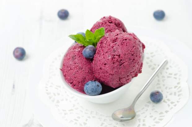 4. Поставить черничное пюре минимум на час в холодильник. Затем переложить массу в мороженицу и приготовить сорбет по инструкции на упаковке.