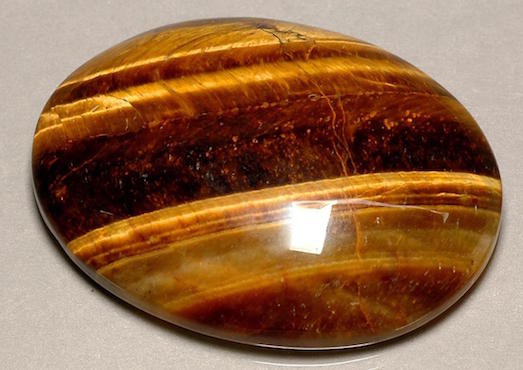 Тигровый глаз – разновидность декоративного полупрозрачного кварца, наполненного множеством микроканалов с лимонитом. Благодаря им и достигается схожесть с взглядом тигра. В зависимости от места происхождения, окрас минерала варьируется от светло-золотистого к насыщенному коричневому.