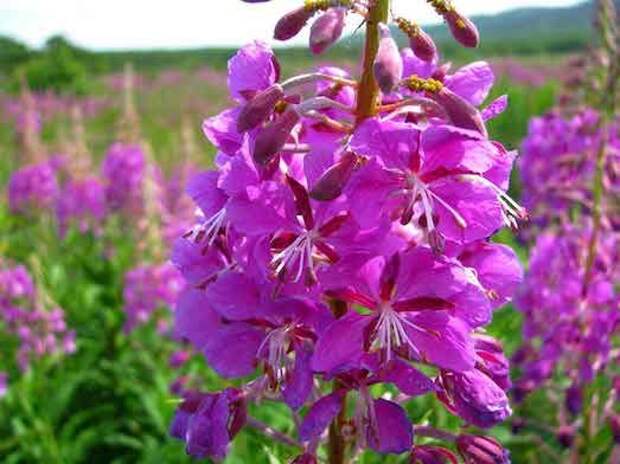 Иван-чай, или кипрей, легко узнаваем по красивым ярким цветкам, собранным в верхушечные соцветия, длиной от десяти сантиметров до сорока пяти, и листьям, темно-зеленым снизу и сизо-зеленым сверху. Его можно встретить вдоль полевых дорог в районе Алтая, Сибири и многих других регионах страны.