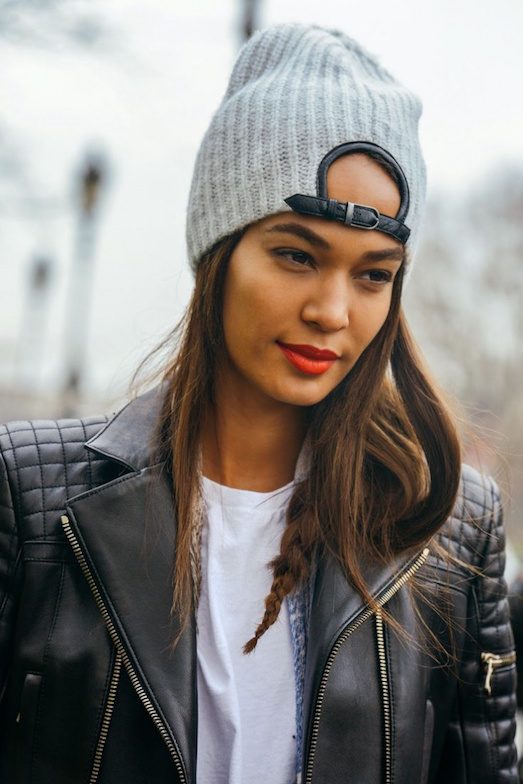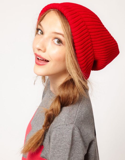 Носить такую шапку лучше с распущенными волосами или низко завязанным хвостом/косой. Если есть челка, не стоит ее прятать. В этом случае просто сдвиньте шапку дальше к макушке. Обладательницам вьющихся и кучерявых локонов стоит подобрать себе мешковатый вариант.