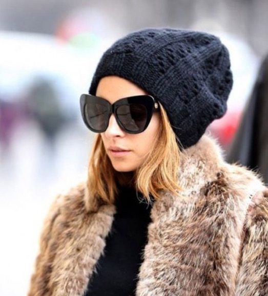 Аксессуары и украшения. Отлично сочетается женская бини с очками. Они могут быть любыми – как спортивными, так и классическими в крупной роговой оправе.