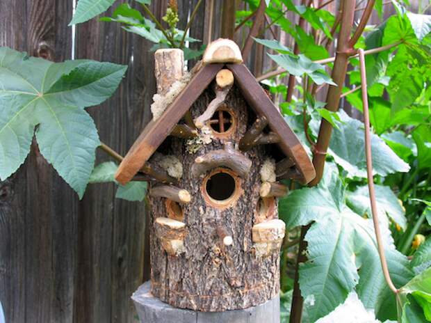 Как своими руками сделать скворечник для птиц, который будет выполнять функции не только жилья пернатых, но и необычного декоративного элемента? Предлагаем несколько интересных вариантов.