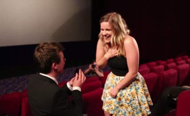 Чтобы сделать Эми предложение, он пригласил ее в кинотеатр, где и началась магия.Смотрите видео!