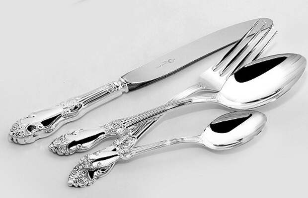 - Долговечность. Если вы обратитесь к своим родителям или просто решите открыть старый сундук с семейными ценностями, то среди прочих предметов наверняка обнаружите набор мельхиоровых приборов. И вы с удивлением заметите, что время ничуть его не изменило. Да, вероятно, на поверхности образовался налёт, но от него легко избавиться, если знать некоторые секреты.