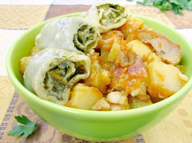 - Перед подачей на стол посыпаем кушанье укропом, сверху поливаем сметаной.